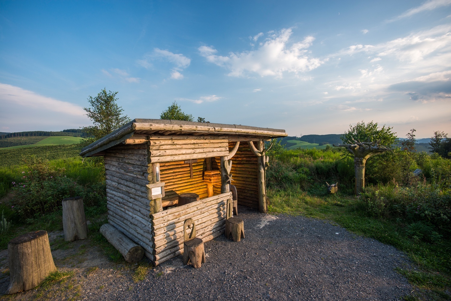 Du lässt die Häuser Kirchrarbachs hinter dir und maschierst zunächst am Fuße des Ringelskopfes entlang in Richtung Kyrill-Hütte. Um sie - und den Wahnsinnsausblick, der dir gleich mit ihr mit serviert wird - zu erreichen, gilt es, einen leichten Aufstieg zu meistern. Das Panorama macht die Anstrengungen aber allemal wett. Ganz in der Nähe zur Hütte wartet außerdem eine kleine Schatzkiste gefüllt mit erfrischenden Getränken. Genau das Richtige, nach all den Anstrengungen, also gönn dir hier eine ausgedehnte Pause.