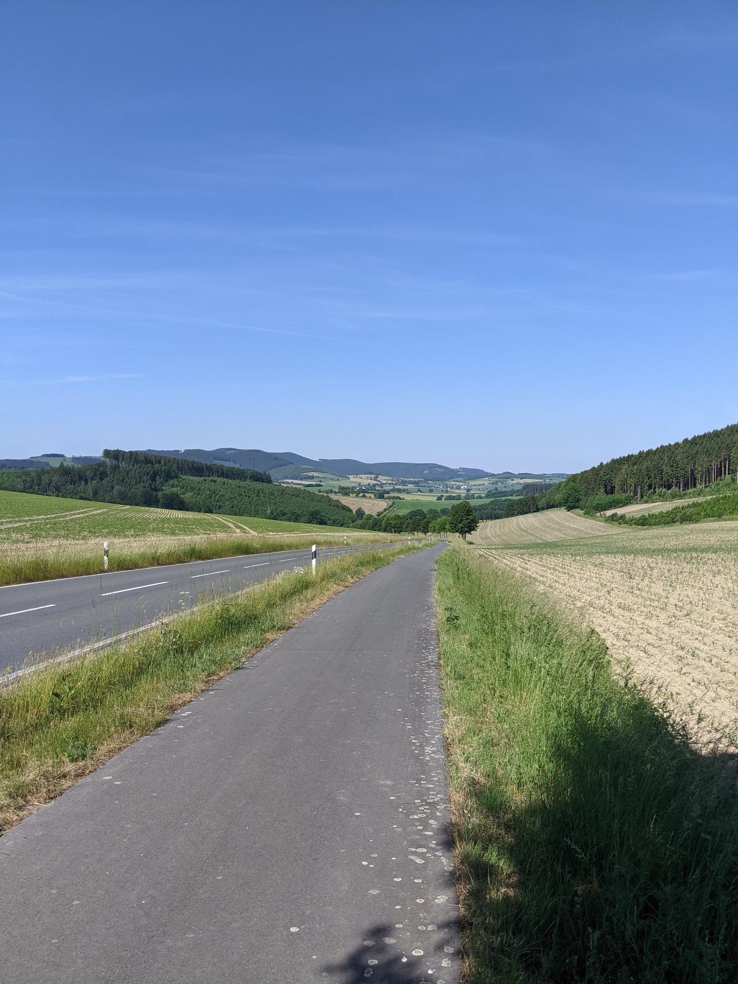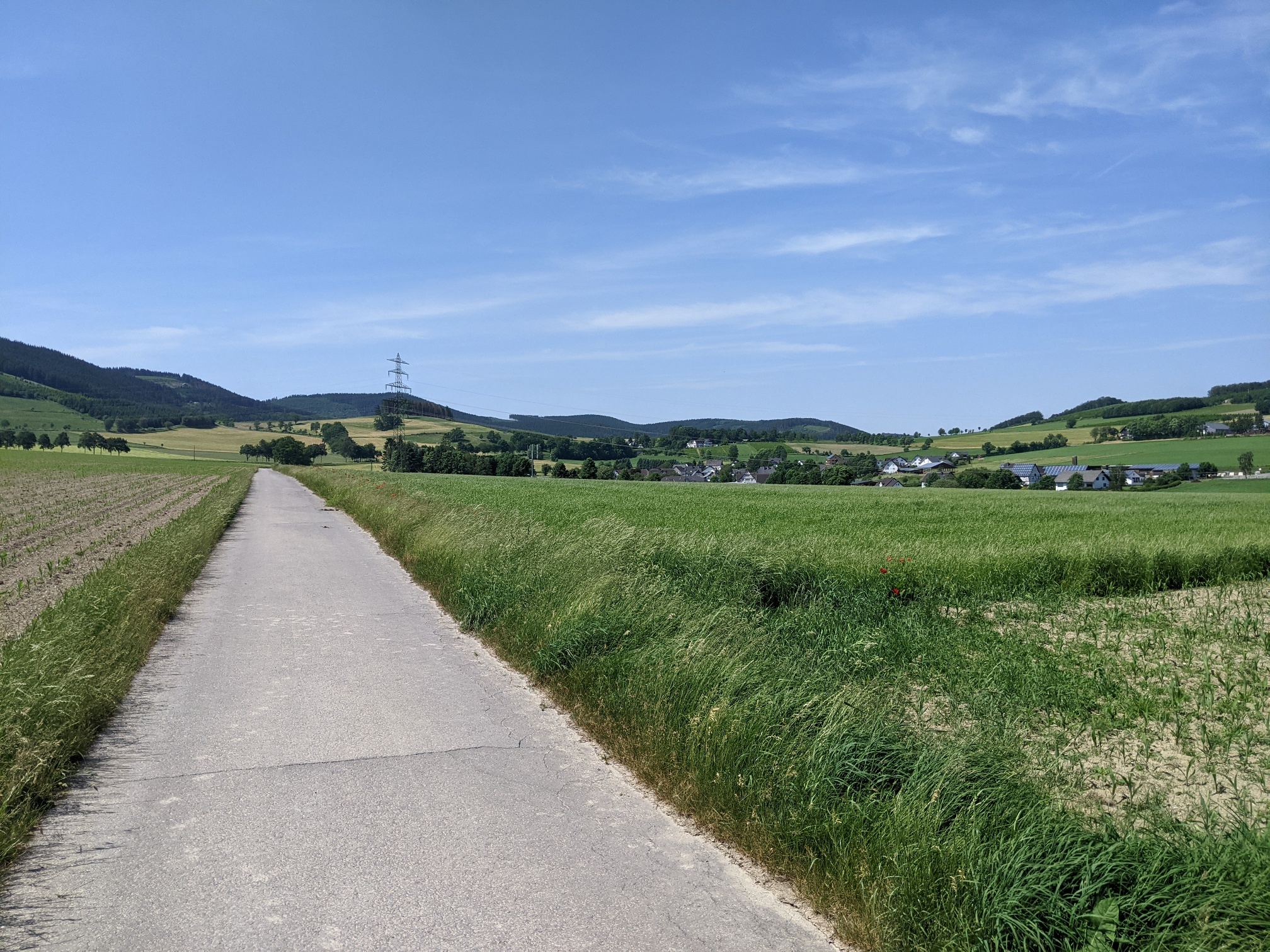 Wir überqueren die Lenne und gehen durch den zweiten Teil des Kurparks in Richtung Hauptstraße (Grafschafter Straße), welche wir überqueren. Am linken Flußufer entlang leitet uns der Radweg an der Fischtreppe vorbei zum Café „Zeit am Wasserrad“ (ehemals Gödeken Mühle und Stelle des ersten Freibades von Schmallenberg). Weiter geht es unterhalb des Huckelbergs in Richtung Fleckenberger Straße, die Lenne ist immer in Sichtweite. Wir überqueren die B236 an der Fußgängerampel und kommen zur Schmallenberger Kläranlage.