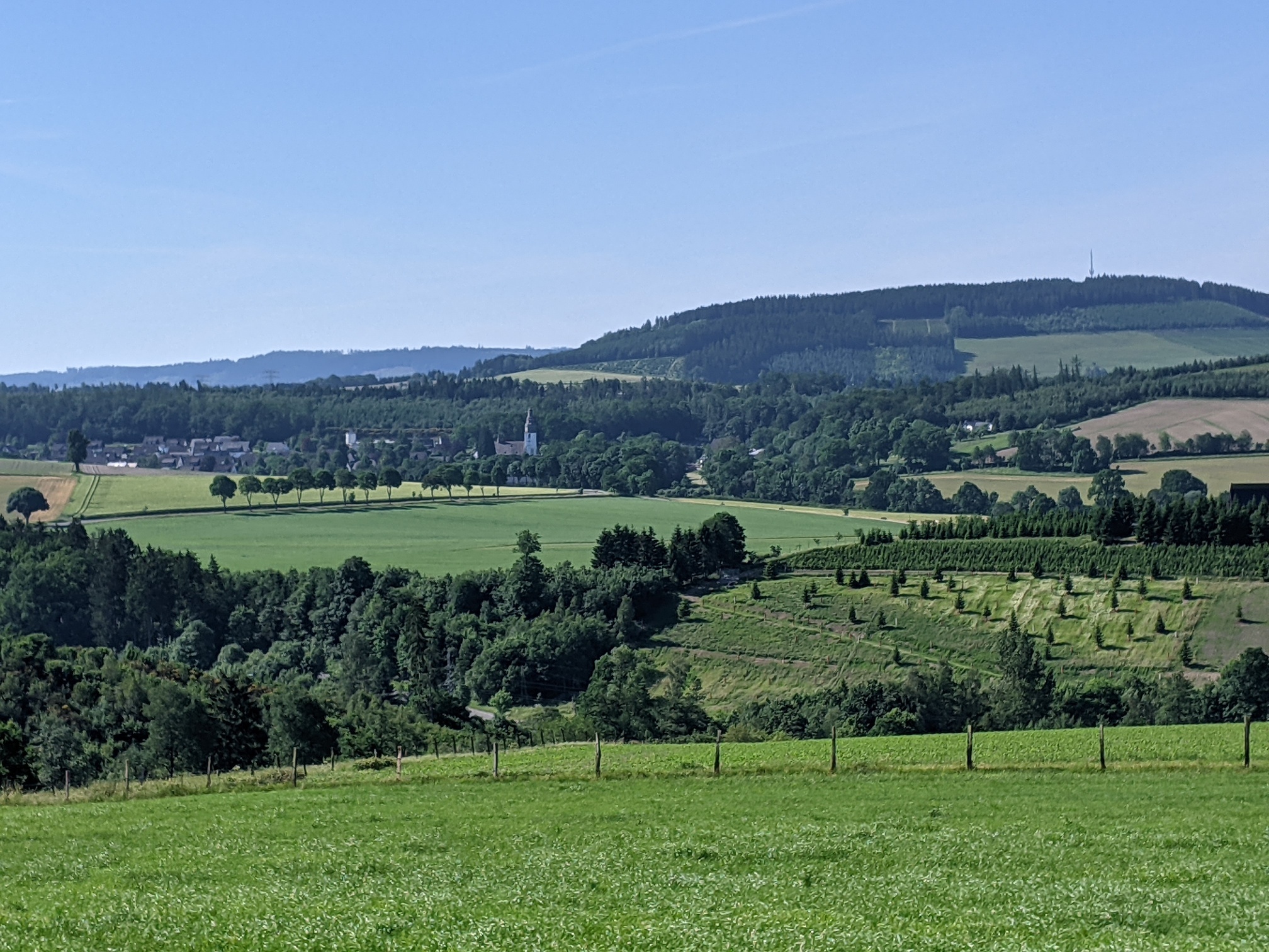 Nun verlassen wir die Lenne und gehen rechts mit dem Philosophenpfad den Berg hinauf zum Vorplatz der Vogelstange. Von dort gehen wir rechts weiter zum Endpunkt des Weges, dem Holz- und Touristikzentrum, Sitz der Touristeninfo des Schmallenberger Sauerlandes. Über die West- und Oststraße führen uns die vielen schönen Schaufenster zurück zur St. Alexander Kirche.