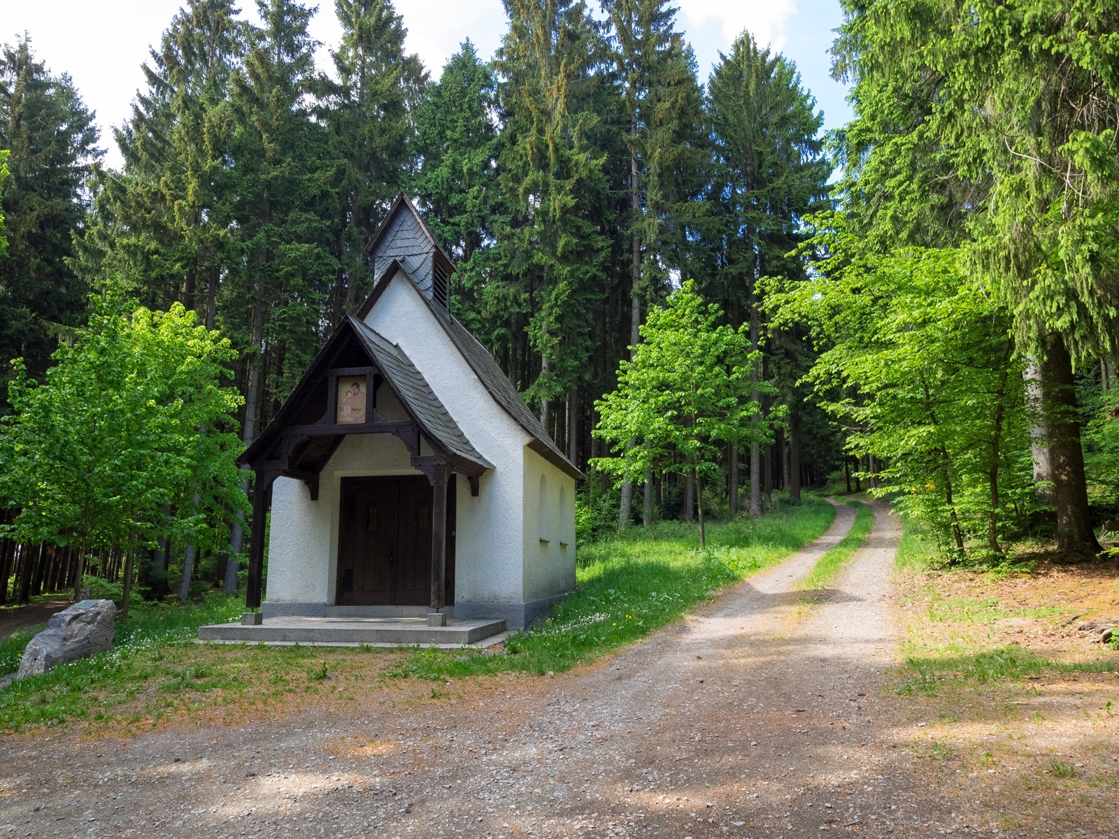 An einer Kreuzung  (Station 2 des Kreuzweges von Mailar kommen) gehen wir geradeaus. Wir folgen nun dem Kreuzweg. Am nächsten Abzweig wandern wir geradeaus und folgen weiter dem Kreuzweg bis zur Kohlhagen-Kapelle. An der Kapelle kommen mehrere Kreuzwege zusammen.