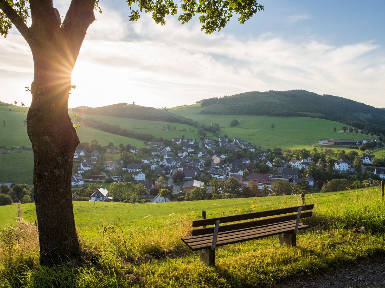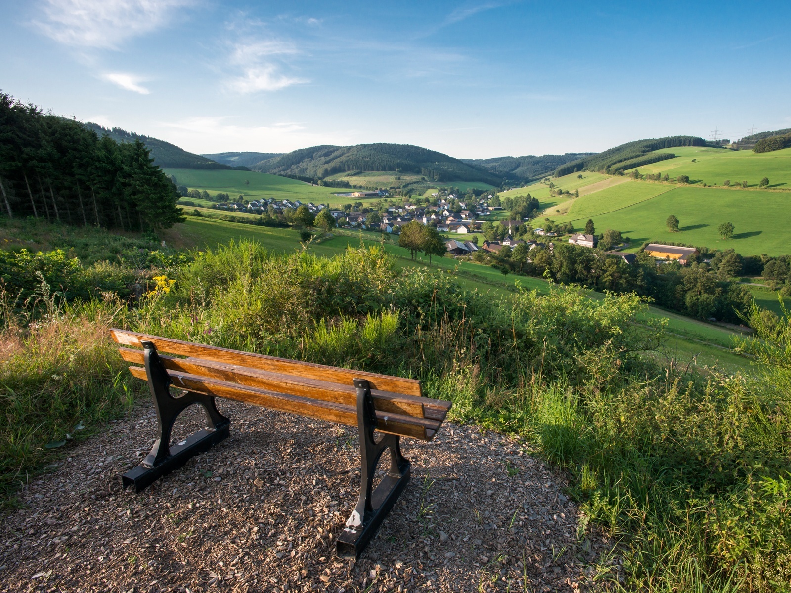 Die Golddorf Route führt rund um den Ort Oberhenneborn im Schmallenberger Sauerland und bietet schöne Ausblicke auf den Ort und die Umgebung.