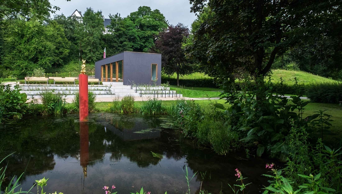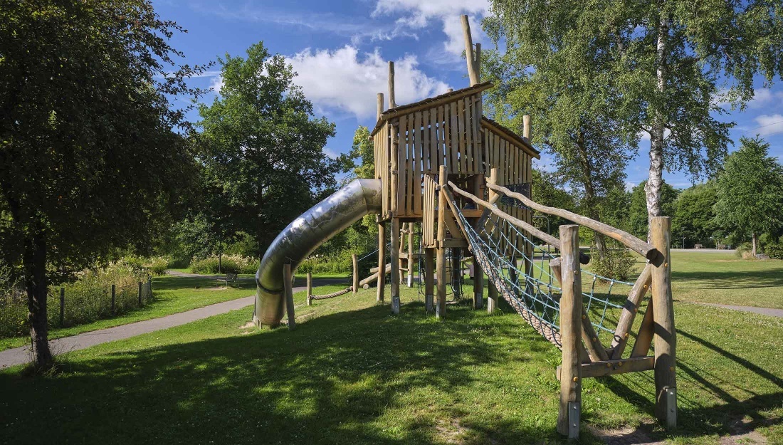 Der Aberg-Weg folgt noch ein kleines Stück der Lenne und erreicht eine Parkanlage. Über schmale Wege kann man hier einen Altarm der Lenne überqueren. Durch die Stadtmauer kommt man ebenfalls in die Schmallenberger Altstadt.