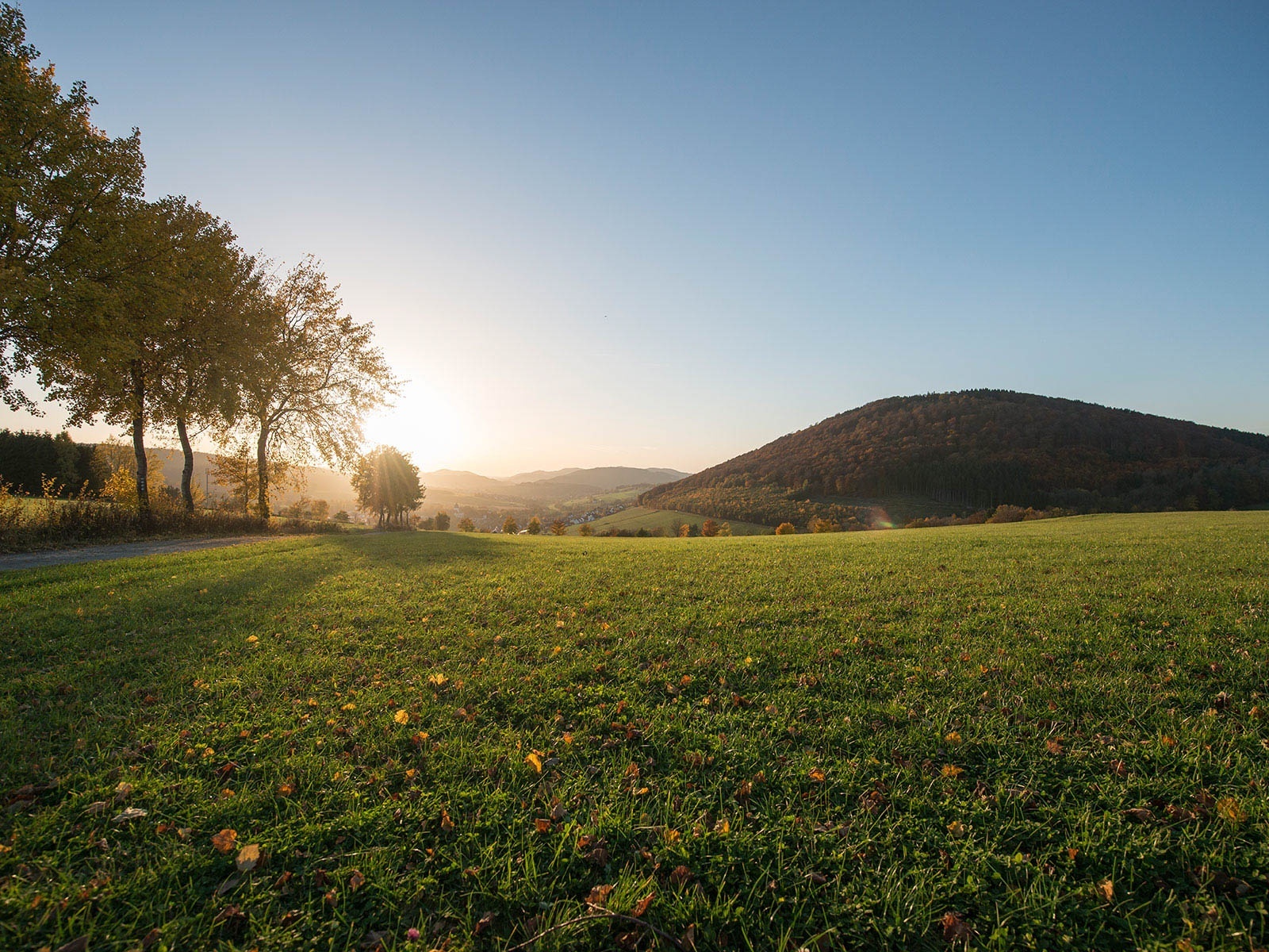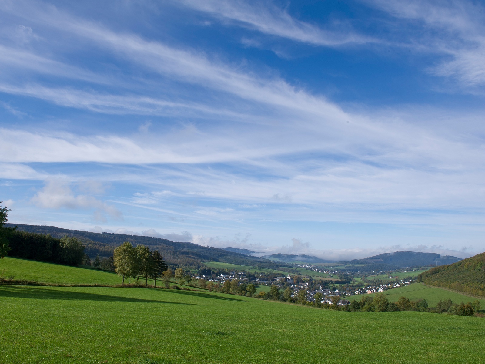 An der nächsten Kreuzung erreichen wir mit 530 m den höchsten Punkt. Weit reicht der Blick in Richtung Winterberger Hochfläche. Nach einer kurzen Pause folgen wir den Markierungen in Richtung Grafschaft. Nach weiteren 700 m erreichen wir die Abzweigung zum Basmecketal. Von hier aus geht es wie auf dem Hinweg zurück zur Wandertafel in der Ortsmitte von Grafschaft.
