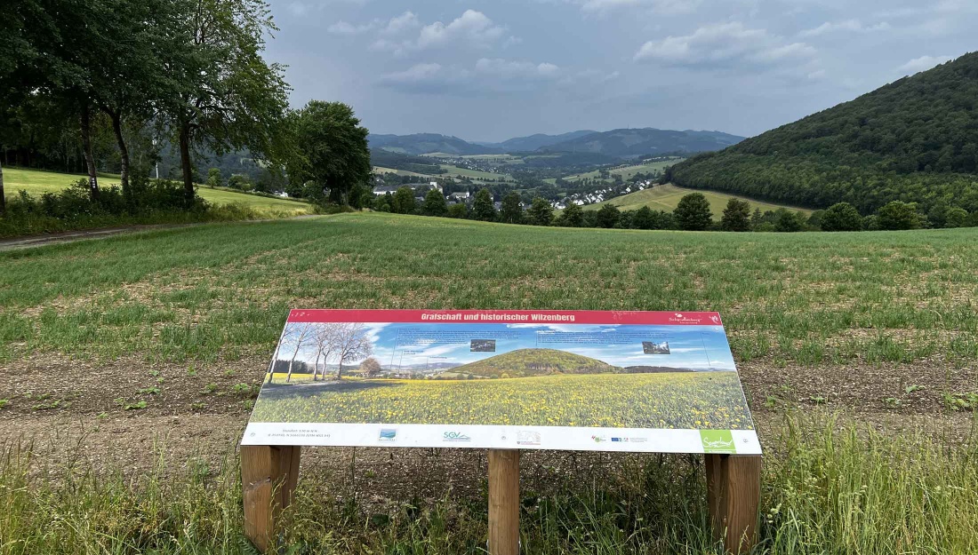 Ihr Weg verläuft auf Teilen des WaldSkulpturenWeges Wittgenstein - Sauerland, über den „Giersberg“, an Grafschaft vorbei und schließlich in den historischen Stadtkern Schmallenbergs.