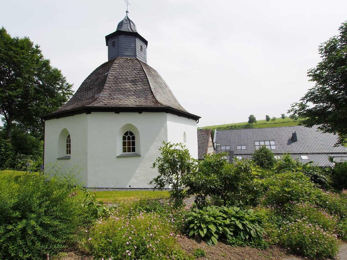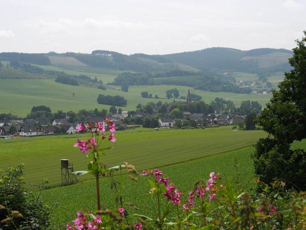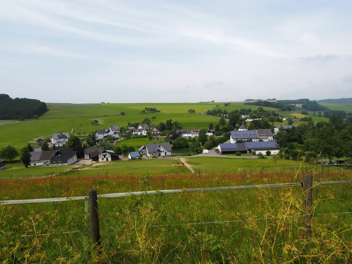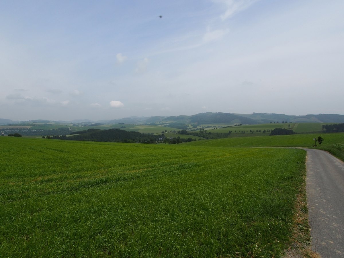 Erflinghausen, heute zur Stadt Meschede gehörend, war vor der Gebietsreform in den 70er Jahren des letzten Jhd. ein Teil der Gemeinde Reiste. Wir setzten unsere Wanderung fort, vorbei an der sehenswerten Dorfkapelle "St. Lucia". Hinter dem Dorf biegen wir links ab, und folgen dem Teerweg ein gutes Stück. In der Nähe der Feldscheune halten wir uns halb links auf dem Teerweg und haben auch bald die Hochebene bei Büenfeld erreicht.