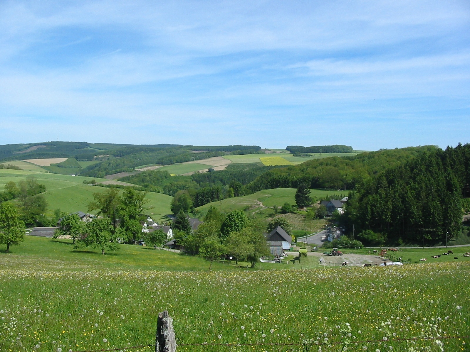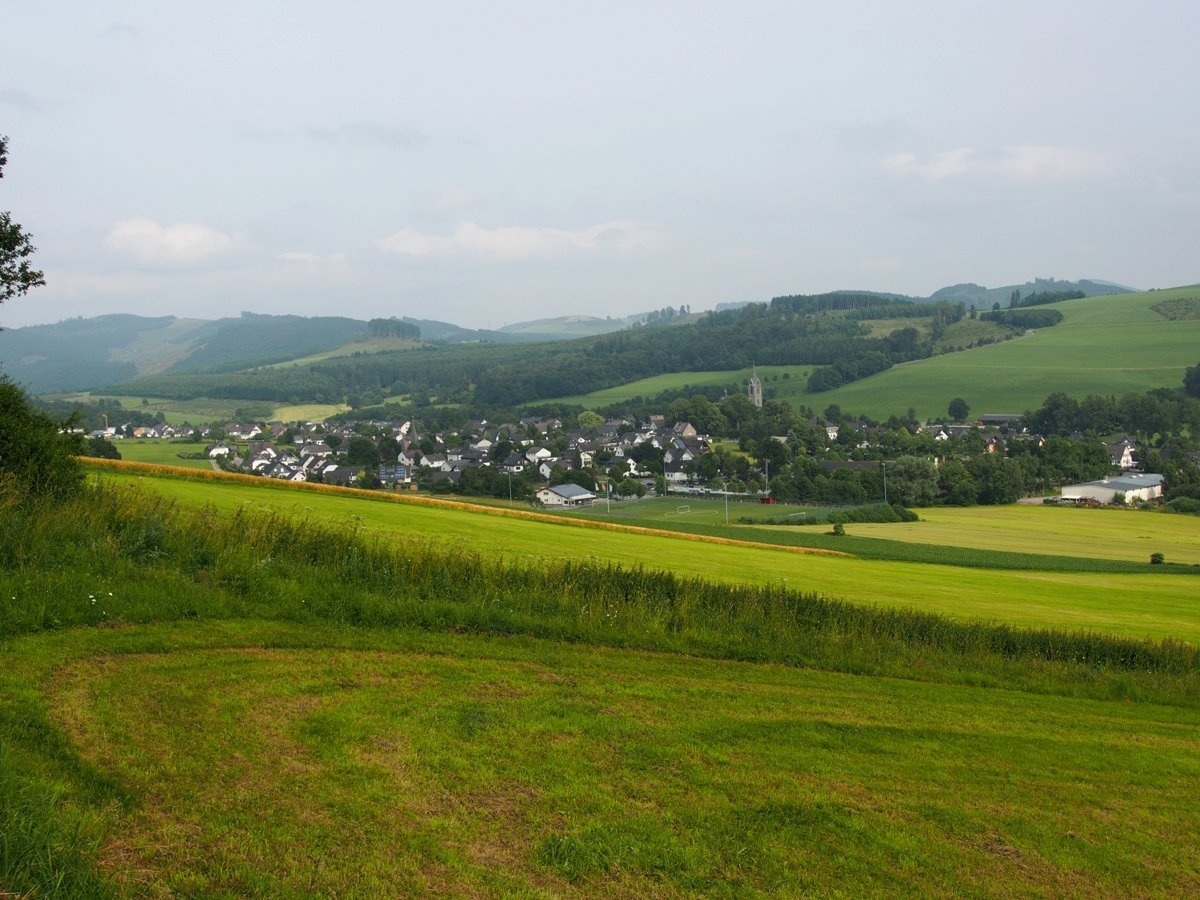 Von hier bietet sich uns ein weiter Blick, wir sehen den Flugplatz Meschede-Schüren und in der Ferne den Fernsehturm auf dem Stimm-Stamm. In Büenfeld angekommen gehen wir rechts ein Stück entlang der L914 ins Dorf hinein. Im Ort biegen wir entgegengesetzt der in der Rechtskurve der L914 nach links. Der Straße in Richtung Wenholthausen folgen wir bis kurz vor das Büenfelder Ortsschild. Dort zweigt ein Weg nach links in das Tal des Büenfelder Siepen ab. Diesem folgen wir, bis wir das Kleinod "Die Holmke" erreichen und auf der Bank ein wenig erholen.