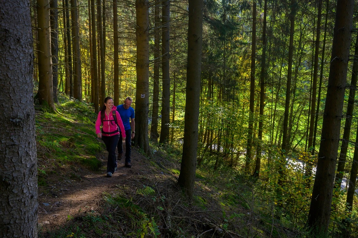 Mit einem passenden Wanderrucksack macht Ihre Tour auf dem Rothaarsteig gleich doppelt so viel Spaß! Wanderrucksäcke bieten durch ein belüftetes Tragesystem sehr angenehme Trageeigenschaften, denn dieses sorgt dafür, dass der Schweiß sofort abdampfen kann. Sie lassen sich mit einem Bauch- oder Hüftgurt fixieren und sitzen so bei jeder Bewegung fest am Rücken. Zudem sind sie mit einer praktischen Halterung für Wanderstöcke ausgestattet und bieten oftmals auch ein Fach mit Schlauchauslass für eine Trinkblase, so dass die Flüssigkeitsversorgung jederzeit gesichert ist.