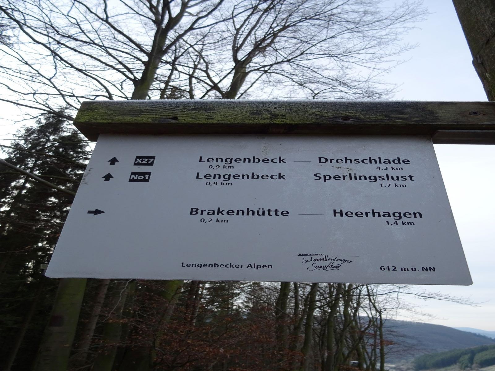 Ab der Wandertafel dem NO 1 / X27 folgen bis ca. 200m vor dem "Kleinen Bildchen". Der NO 1 / X 27 führt über den "Sonnenpfad", vorbei am "Haus des Gastes". Nach ca. 700m kommt das erste Hinweisschild, geradeaus weiter bis zur nächsten Kreuzung, links hinunter ca. 500m an der Kreuzung dann rechts, geradeaus ca. 1 km bei dem Schild links rein bis kurz vor der Schiefergrube "Sperlingslust" in Lengenbeck, rechts weiter bis 100m vor der Klause, dann ca. 600m rechts hoch zum "Kleinen Bildchen", vorher trennen Sie sich von dem X27.