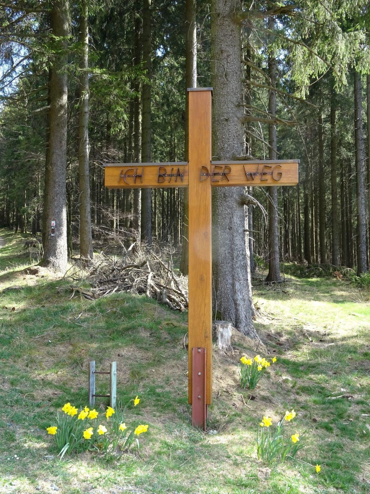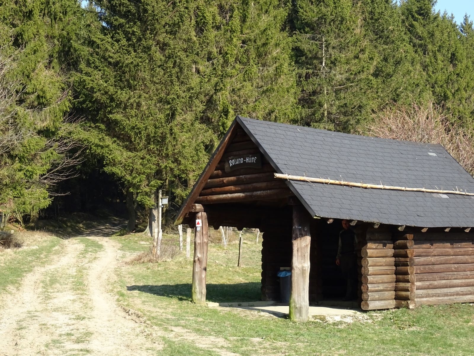 Bis hier sind es ca. 4 km. Beim "Kleinen Bildchen" geht es weiter hinter der Roland-SGV-Hütte vorbei und über einen Rasenweg hoch, nach leichtem Anstieg ist links eine Bank- dort können Sie ein wenig verweilen und den wunderschönen Weitblick über das Plateau des Herhagens genießen- dann weiter bis zum Ende des Weges, links hoch an der "Duisburger Hütte" vorbei bis zum "Ingrid Kreuz". Von hier noch einmal den wunderschönen Blick ins Nesselbachtal und den Herhagen genießen, vor dem Kreuz rechts an dem Wasserbehälter vorbei, bis zur nächsten Kreuzung.