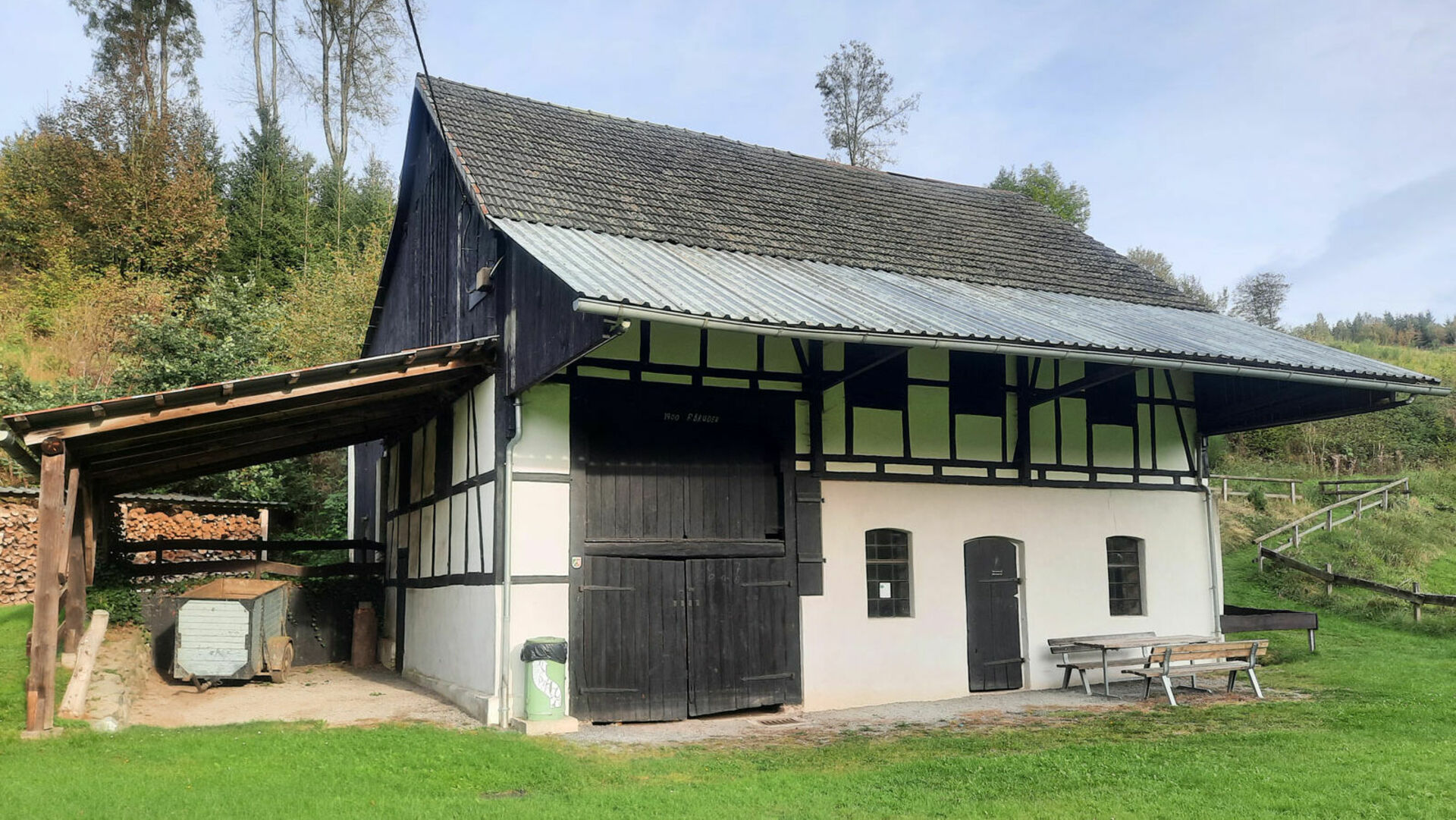 Die Knochenmühle ist ein eindrucksvolles Beispiel für die Bauweise des 19. Jahrhunderts. Sie wurde als zweigeschossiger Bau mit einem Bruchsteinerdgeschoss und einem Fachwerkobergeschoss errichtet. Auffällig ist das Deelentor an der Traufenseite, sowie das eiserne Mühlrad an der rechten Giebelseite, das aus Herhagen stammt. Das alte Laufwerk mit Stampfeinrichtung ist noch vollständig erhalten. Der rückwärtige Gebäudeteil und das Schleppdach wurden erst später angebaut. Das Satteldach ist mit Pfannen gedeckt und das Giebeldreieck ist verbrettert. Die Mühle steht unter Denkmalschutz und ist von historischer Bedeutung.